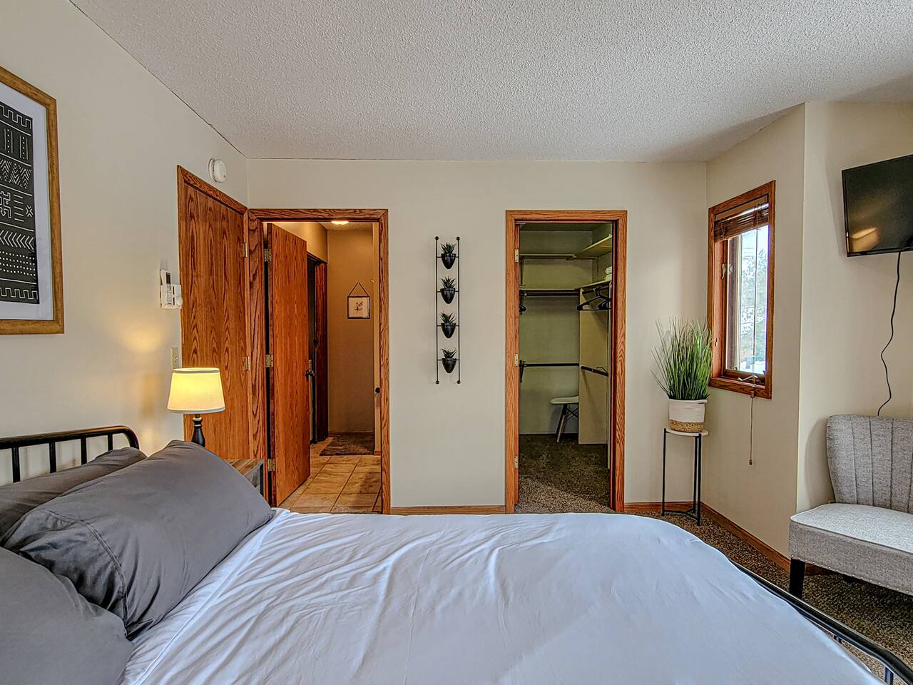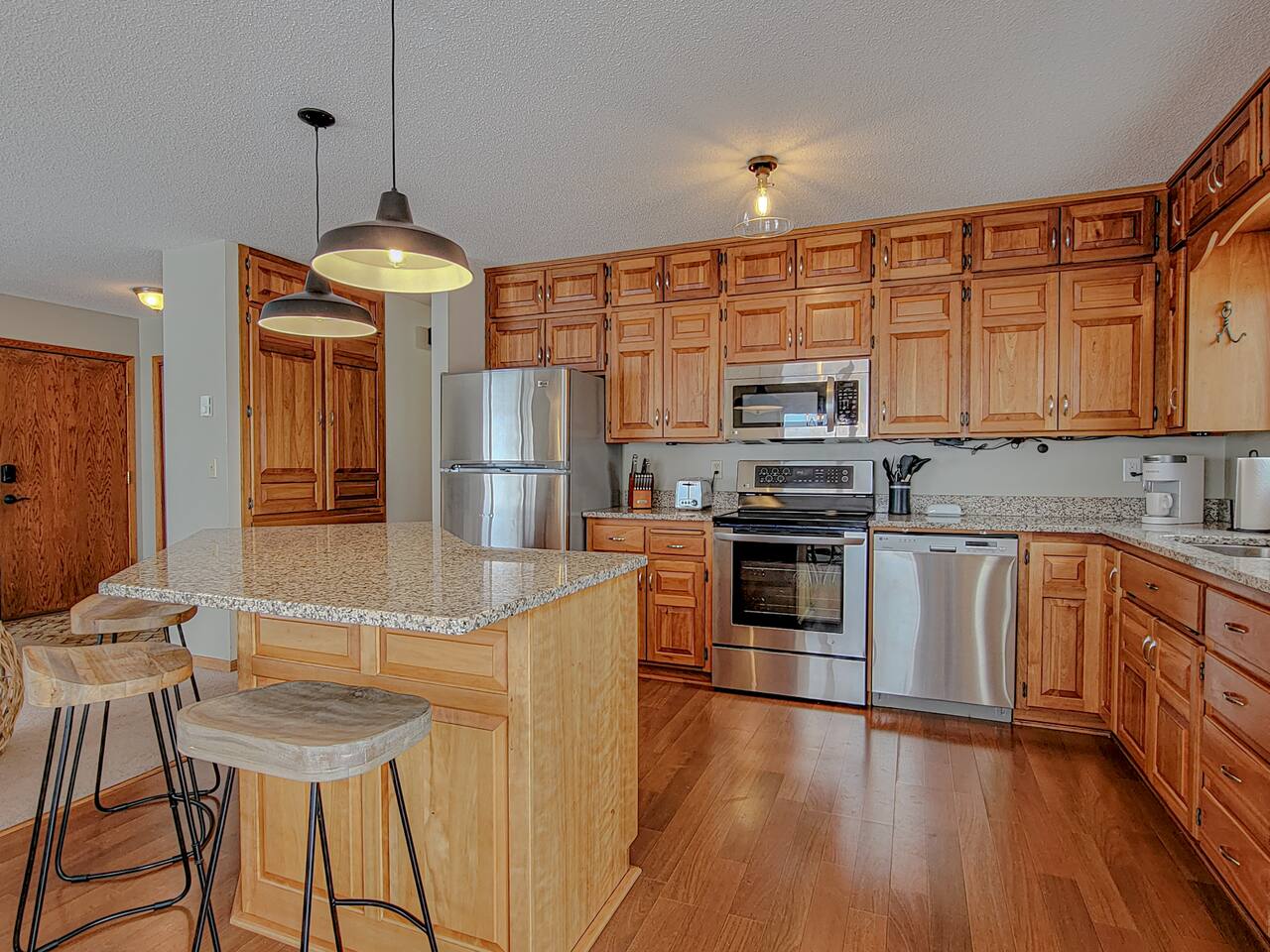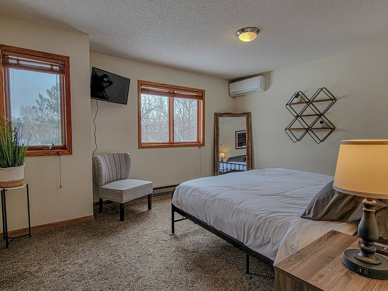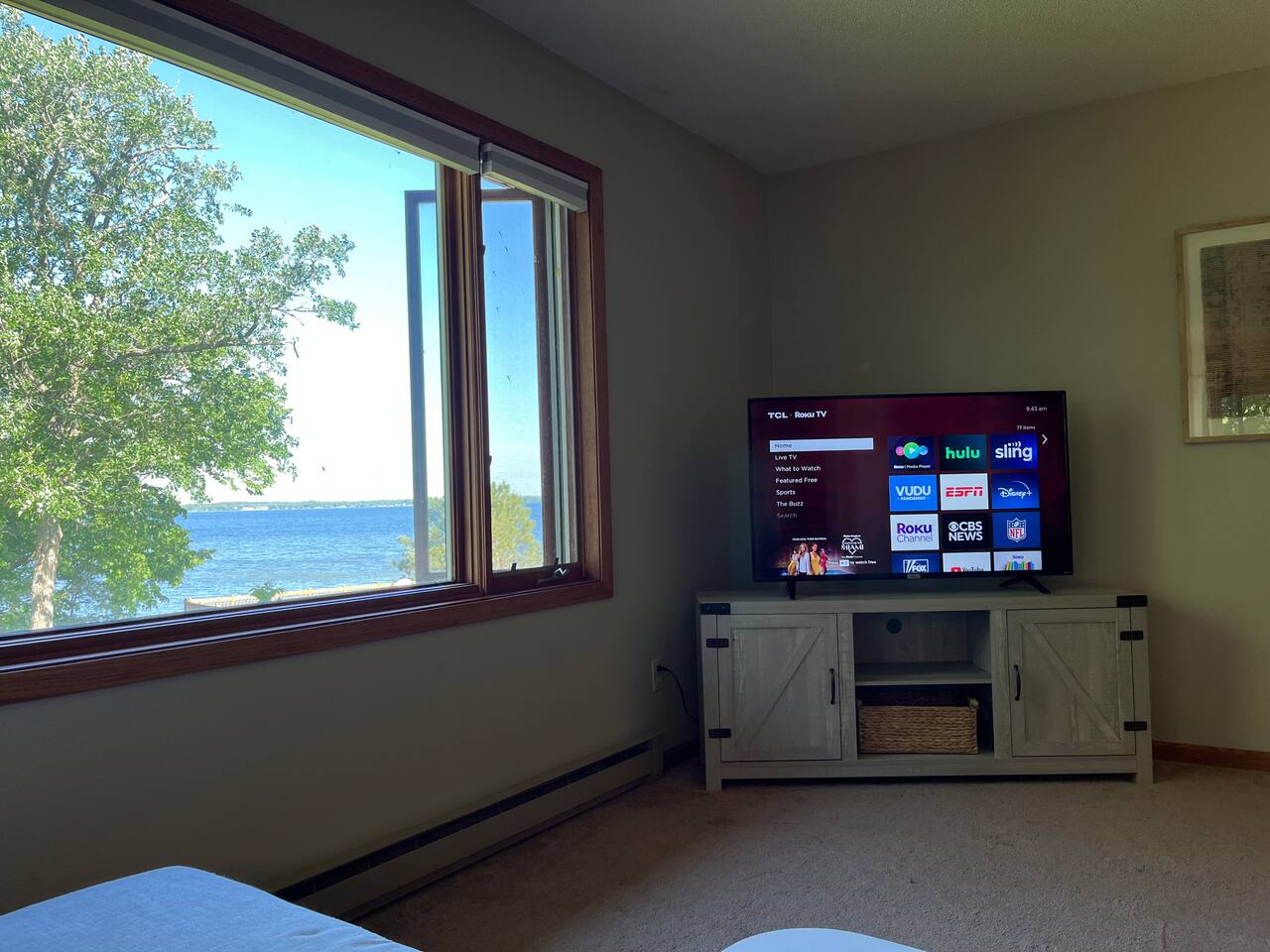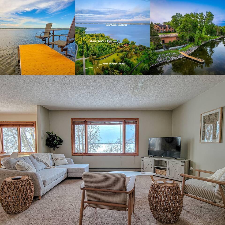 Welcome to the Breezy Hills condos! The Eagle's Perch condo 2 is on the second floor on the left. The Property ● Lakefront (2 acre lot) ● Huge Yard ● Paul Bunyan Trail (you have private access to this!) ● Private patio Adventures/Activities ● Fishing from the shore ● Kayaking/Boating- Free use of Kayaks and free boat docking! ● Swimming - water is 3-4 feet deep around the dock area and great for swimming! ● Walk, Bike or Snowmobile along the beautiful Paul Bunyan Trail! ● Yard games - volleyball ● BBQ ● Bird Watching - we often see eagles and various other birds Living Room ● 55” Smart TV w/Disney+ and Hulu ● New furniture ● Amazing view of the lake! ● Comfy Sleeper Sofa queen size Kitchen/Dining Room ● All the cooking essentials ● Coffee and Tea ● Dishwasher, Stove, Fridge, Microwave ● Amazing View of the lake from the Dining Room table! Master Bedroom ● King size Bed! ● Smart TV ● Closet Second Bedroom ● Queen bed ● Closet Master Bathroom (Full) ● Tub/Shower ● Soap, Towels, Hair Dryer ● Free Washer and Dryer! Second Bathroom (Full) ● Tub/Shower ● Soap, Towels