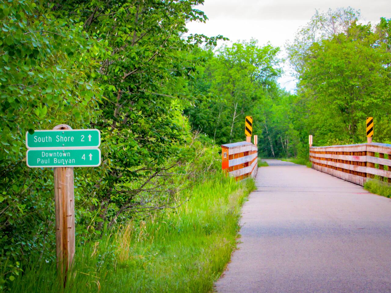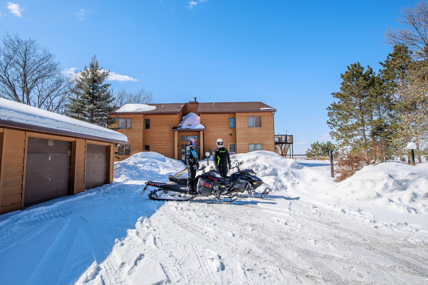 Garage parking may be available. Best to park in the driveway.5 Bring your snowmobile and hop on the famous Paul Bunyan State Trail which you have private access to at the beginning of the driveway. This beautiful historic trail is the longest state trail in MN and connects with the Heartland State Trail, Blue Ox Trail, and Lake Bemidji State Park. A short 10 minute car ride brings you to quaint downtown Bemidji where you can find the famous Paul Bunyan and Babe the Blue Ox statues as well as great local places for food, drinks, and coffee. A 10 minute drive north up the west side of the lake brings you to serene Lake Bemidji State Park where there's a boat launch, beach, and hiking trails.
