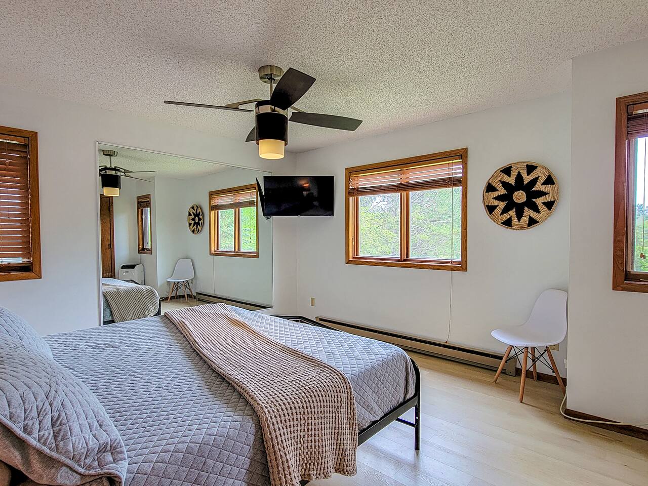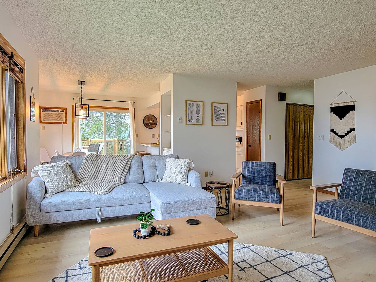 Private access to the Paul Bunyan Trail! Located on beautiful Lake Bemidji, this cozy SECOND floor 2 BR 2 BA condo is ready for your lakeside getaway! Enjoy the private deck with views of the lake, Grill, FREE use of Kayaks, and private access to the famous Paul Bunyan Trail. Comes furnished with a King bed, fast internet, smart TVs, Keurig coffee and cooking essentials. Seamless, self check-in is provided. Keep an eye out for the eagles! Cancellation policy is firm.