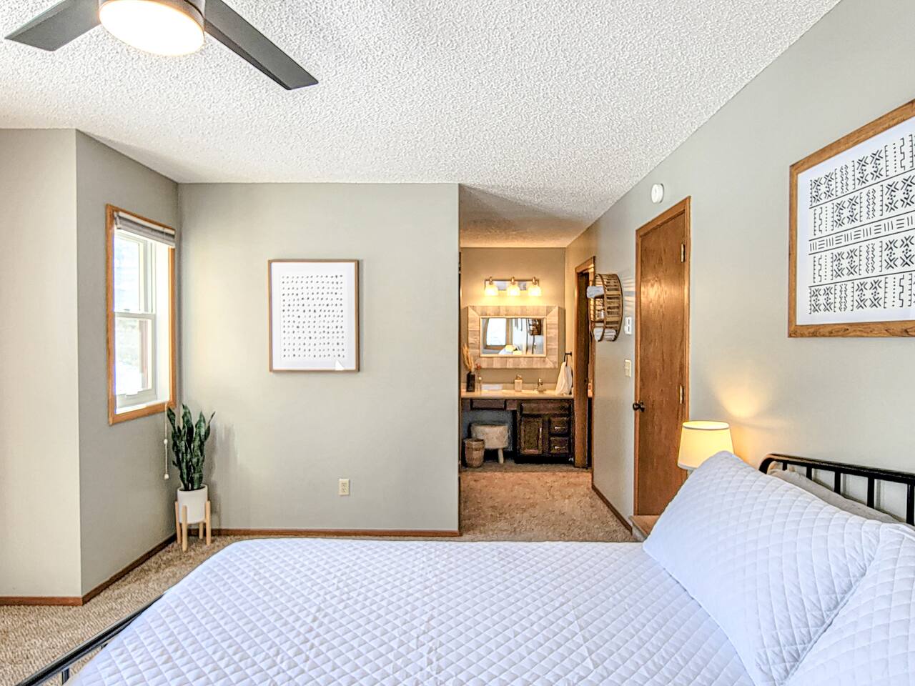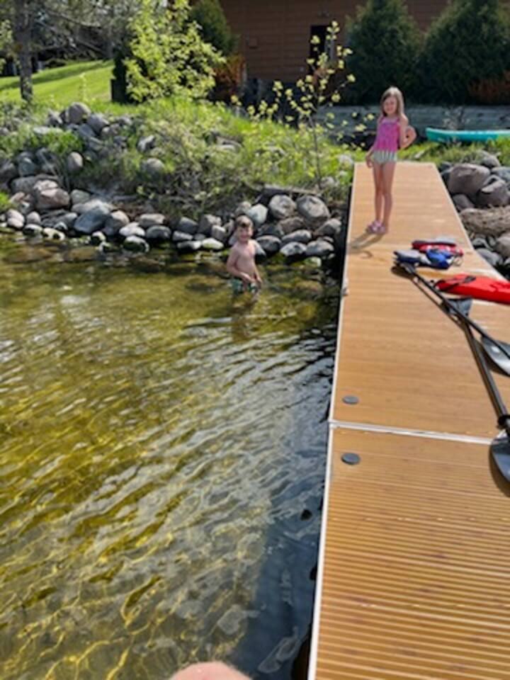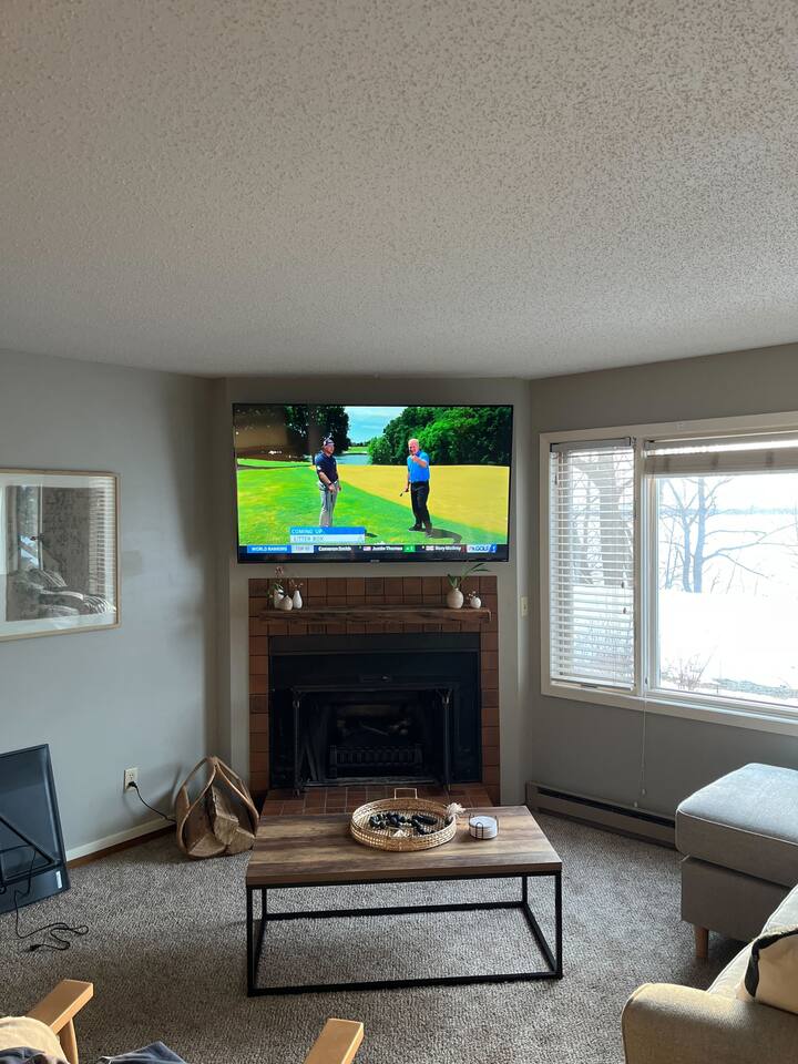 Welcome to the Breezy Hills condos! The Fox Den condo 4 is FIRST floor on the right. The Property ● Lakefront (2 acre lot) ● Huge Yard ● Paul Bunyan Trail (you have private access to this!) ● Private patio w/ Grill Adventures/Activities ● Fishing from the shore ● Kayaking/Boating- Free use of Kayaks and free boat docking! ● Swimming - water is 3-4 feet deep around the dock area and great for swimming! ● Walk, Bike or Snowmobile along the beautiful Paul Bunyan Trail! ● Yard games - volleyball ● BBQ ● Bird Watching - we often see eagles and various other birds Living Room ● 65” Smart TV w/Disney+ and Hulu ● New furniture ● Amazing view of the lake! ● Comfy Sleeper Sofa queen size ● Electric Fireplace Kitchen/Dining Room ● All the cooking essentials ● Coffee and Tea ● Dishwasher, Stove, Fridge, Microwave ● Amazing View of the lake from the Dining Room table! Master Bedroom ● King size Bed! ● Smart TV ● Closet ● Free Washer and Dryer! Second Bedroom ● Queen bed ● Closet Bathroom ● Jack and Jill style bathroom ● 2 sinks and 1 tub/shower