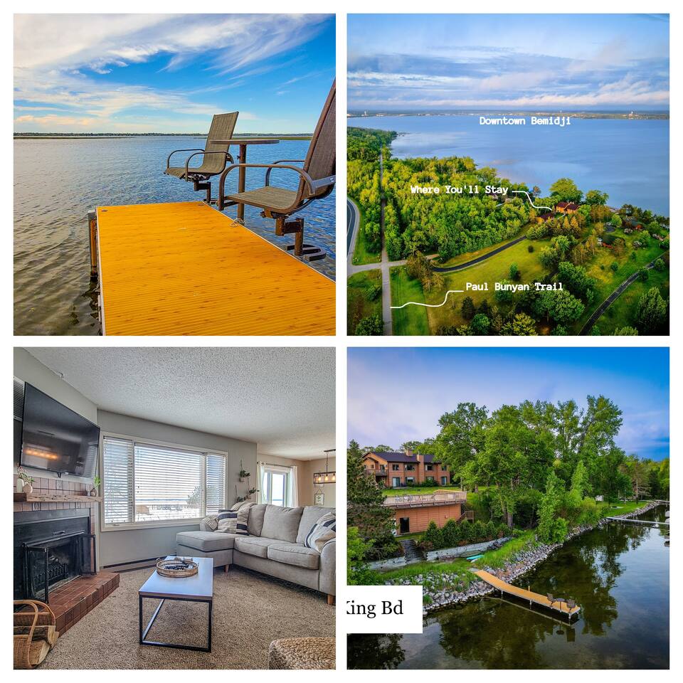 Private access to the Paul Bunyan Trail! Located on beautiful Lake Bemidji, this cozy FIRST floor 2 BR 1 BA condo is ready for your lakeside getaway! Enjoy the private deck with views of the lake, Grill, FREE use of Kayaks, and private access to the famous Paul Bunyan Trail. Comes furnished with a King bed, fast internet, smart TVs, Keurig coffee and cooking essentials. Seamless, self check-in is provided. Keep an eye out for the eagles! Cancellation policy is firm.